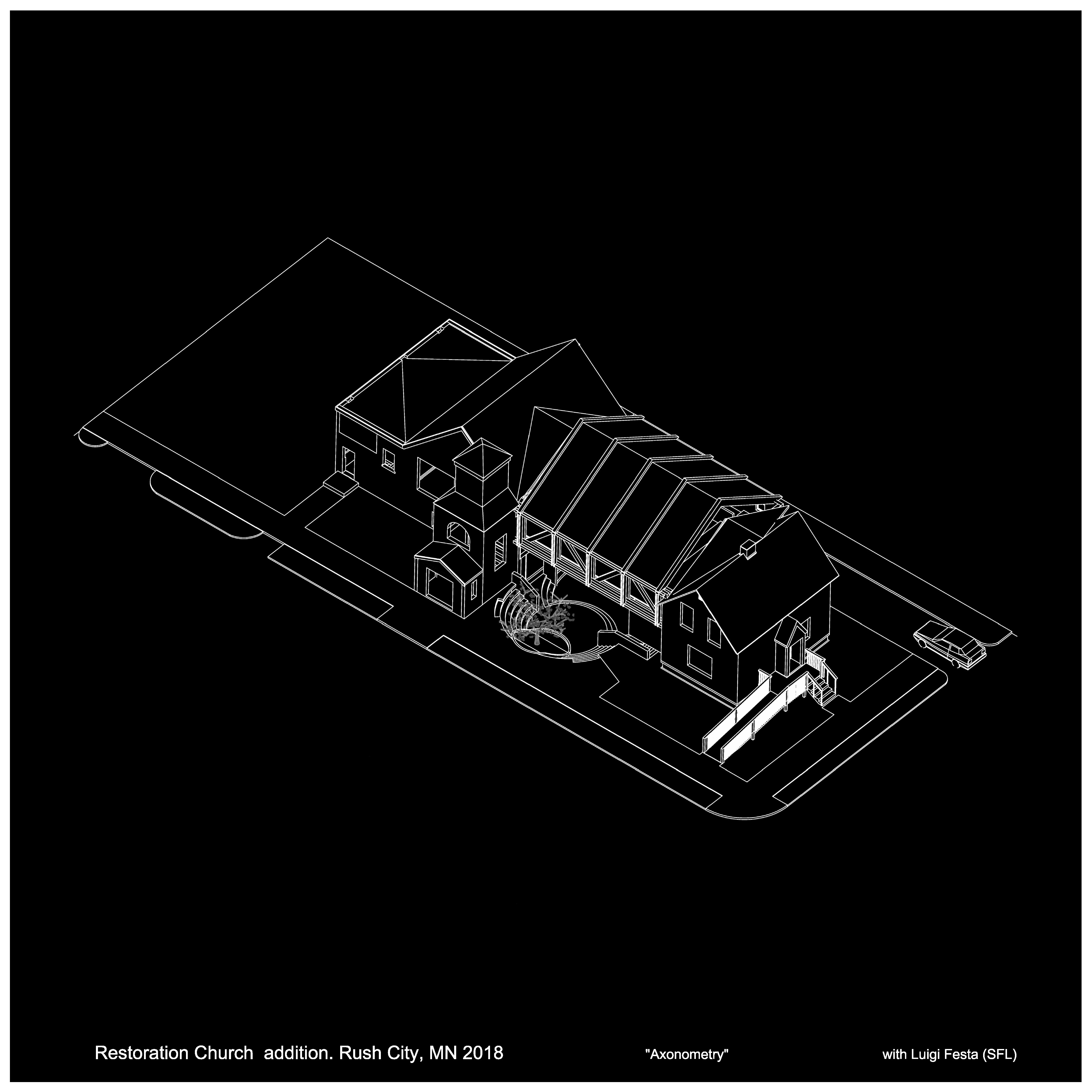 Restoration Church addition. Rush City, MN 2018. Preliminary. (work in progress). with Luigi Festa (SFL).